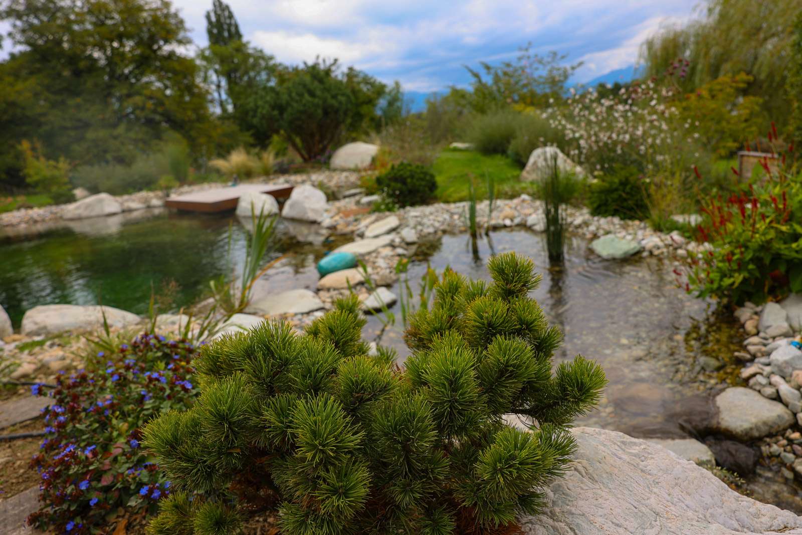 Construction d’une piscine naturelle de 150 m2 avec rivières, pierriers et plantations adjacentes